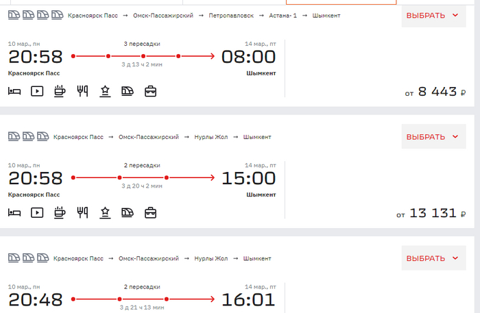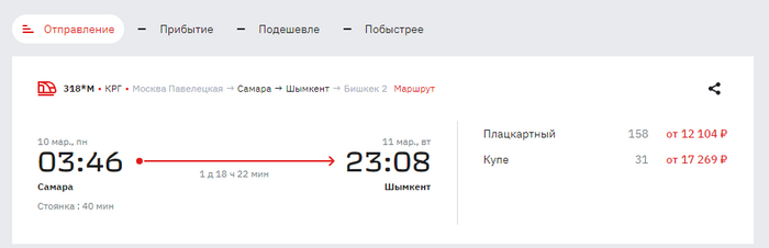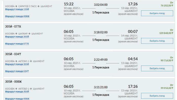 Все-все варианты можно найти на https://www.rzd.ru/ и https://tickets.kz/ но на первом выбор больше.