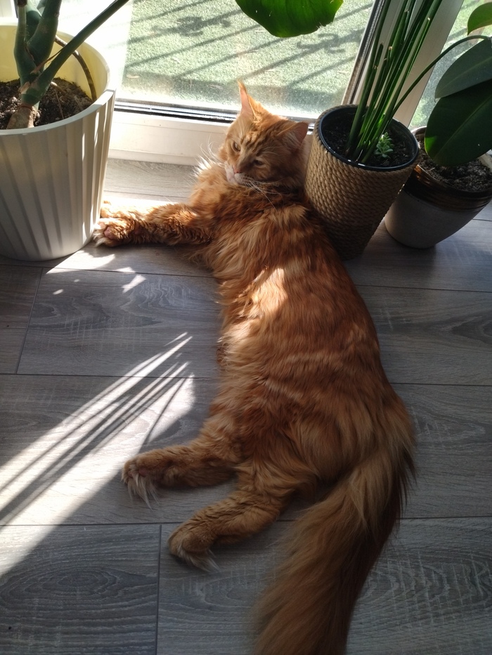 Это был самый ласковый мейнкун в своем помете, который сам шел на руки к человеку, хотя обычно куны не сильно жалуют таким отношением (и правильно делают).