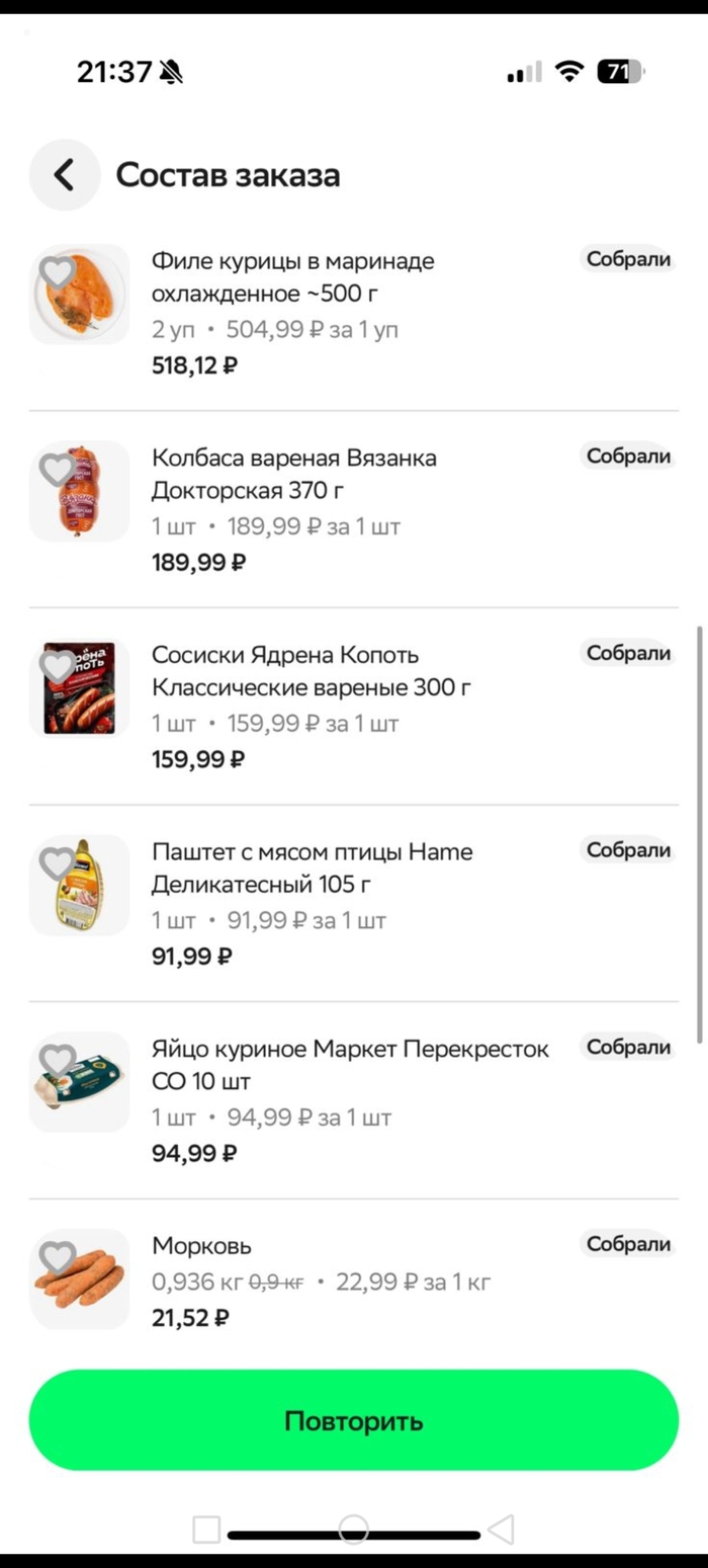 Уже несколько лет пользуемся этой доставкой. Всегда были отличные, всё вовремя. Если могли приехать пораньше, то доставщик звонил и сообщал. В общем всё устраивало. До прошлой недели. На прошлой неделе привезли как обычно, оплатил, доставщик уехал. Жена стала проверять - а в коробочку от дорогой зубной пасты положили пасту подешевле. В общем, неприятно. Жена делает заявку на возврат, бац - и на завтра деньги приходят. Ого, думаю, оперативно. А вчера снова доставка и при пересчете, когда курьер ушел, не досчитываемся масла, творога, сметаны. Жена опять заявку на возврат. Бот четко ответил, что ждать 3 рабочих дня, а сегодня пару минут назад эсэмэски щелк-щелк-щелк - всё вернули. Не знаю, как там понимают, что мы не обманываем, или просто невыгодно с нами спорить, но возвраты прошли как часы. Ребята-девчата, несмотря на некоторую нервозность, тем не менее, вы - молодцы! Надеюсь, что доставки будут нормальные, пользоваться вашей фирмой будем и дальше.