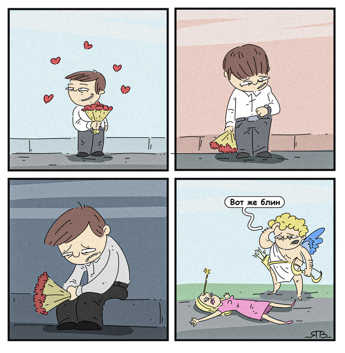 Купидона Илью срочно вызвали на Олимп к Афродите. Настроение сразу упало: ничего хорошего от срочных вызовов к богине он не ждал. И оно упало еще сильнее, когда в приемной он обнаружил купидона Ашота (тварь, притворяющуюся другом, и стукача), который почёсывал бороду, гнусно улыбался и смотрел на него загадочно. Да еще и богиня встретила его стоя, а это был плохой знак.