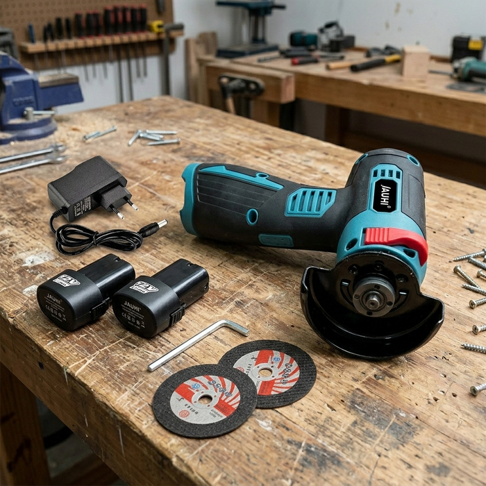 Аккумуляторная шлифовальная машина JAUHI с диском 115 мм режет металл, шлифует швы и снимает ржавчину. Бесщёточный двигатель развивает до 19 000 об/мин, 12-вольтовый аккумулятор работает до 45 минут на одном заряде. Система защиты от перегрузок предотвращает поломку при заклинивании диска.