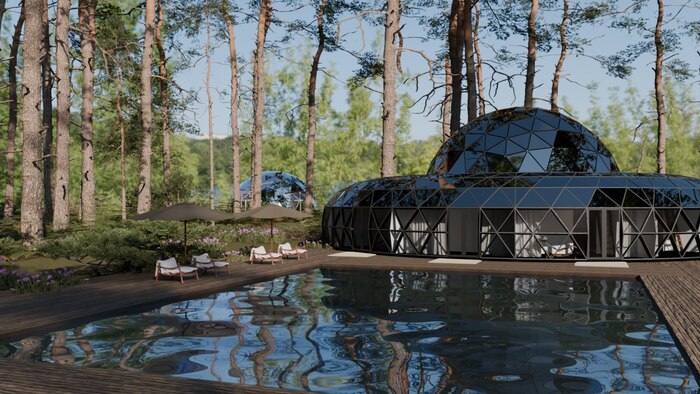 Предыстория такова, что вздумалось мне построить что-то такое необычное и уникальное. Давно интересуюсь темой купольных домов, но смущает что все они каркасники, а мне хочется камня, металла и архитектурных элементов. Прикрепляю рендер концепта, который разработал сам.