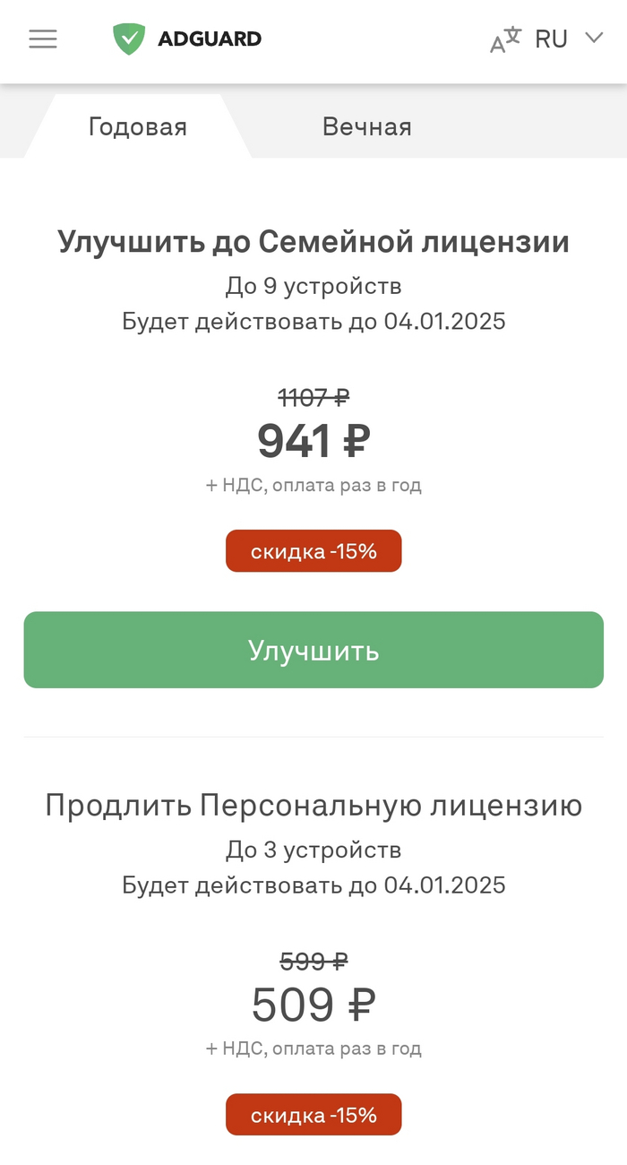 И вжух, у нас активируется 30% скидка на действующую лицензию.