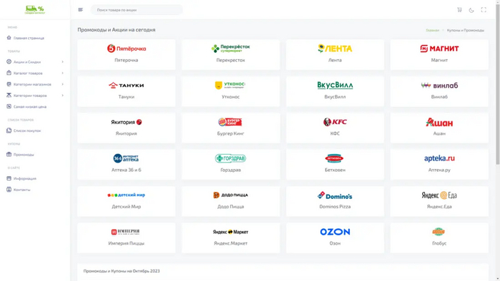 После того, как я собрал всё необходимо и перепроверил, я захожу в раздел промокоды и смотрю, нет ли каких-нибудь дополнительных бонусов в магазинах, которые я собираюсь посетить. Часто бывает, что ритейлеры предлагают еще и купоны на первые заказы и заказы от определённой цены.