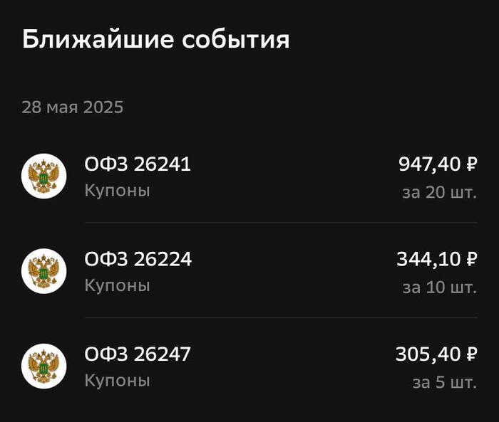 Вчера получил 1500₽ от ОФЗ, это уже приятная сумма за день, раньше когда начинал, выплаты были по 200-500₽, порой за месяц.