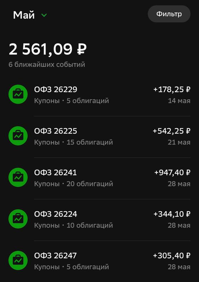 ОФЗ - тут мы дело имеем с самым стабильном заемщиком, которого только можем представить, с самим государством, государство всегда платит по своим долгам, надежнее заемщика придумать невозможно. Тут есть опция составления лесенки, подобрать шесть ОФЗшек таким образом, чтобы каждый месяц вам капал регулярный стабильный доход, например: ОФЗ 26233, ОФЗ 26240, ОФЗ 26244, ОФЗ 26230, ОФЗ 26247, ОФЗ 26243, таким образом, вы закроете все месяцы и будете уверены в регулярности выплат, найти ОФЗ можете на свой вкус и цвет.