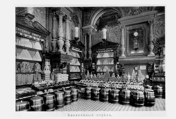 Торжественное открытие "Магазина Елисеева и погреба русских и иностранных вин" на Тверской состоялось летом 1901 г. Позже были открыты шикарные магазины в Петербурге и Киеве.