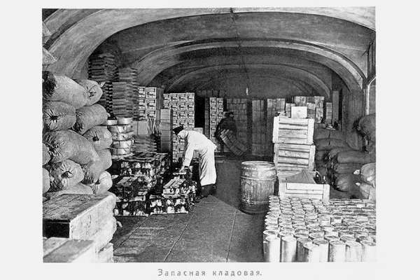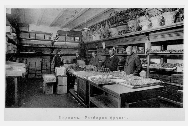 В продажу такие продукты уже не шли ни под каким видом. Но и выбрасывать их было нельзя (не дай бог, кто увидит, что у Елисевых "продукт спортился"). И домой служащим его не отдавали по той же причине. А поэтому после закрытия магазина приказчики, служащие и грузчики собирались вместе и ели апельсины, персики, маракую, папайю и прочая...