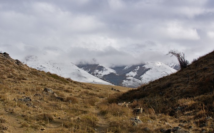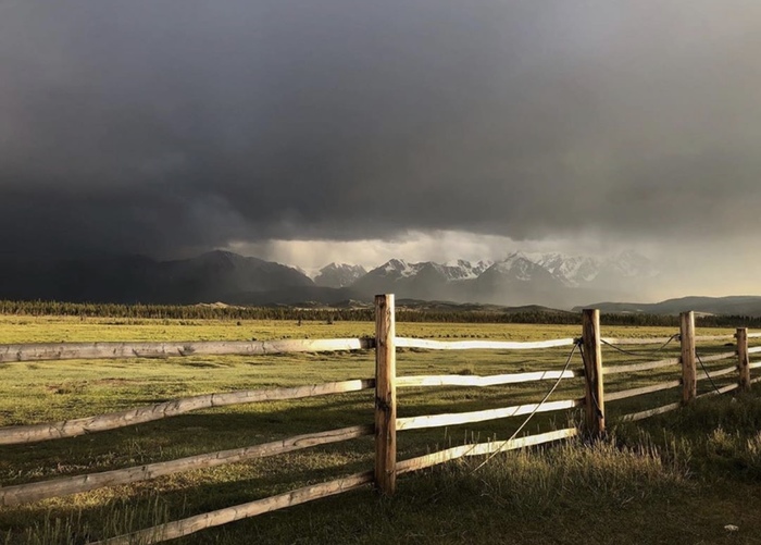 Горный Алтай. Закат и облака над ущельем Мажой. Рассвет в Курайской степи
