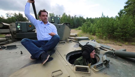 «Курганец-25» не серийная БМП, а опытный образец. Вернее, несколько образцов, и все они отличаются друг от друга. Главный конструктор «Курганмашзавода» Cергей Абдулов говорит, что при принятии на вооружение может смениться и название. Тем не менее, несмотря на то, что многие элементы нашей перспективной БМП носят гриф «секретно», нам дали возможность проехать на бронированной машине по полигону. Раннее утро встретило нас снежком, бодрым морозцем и новейшим «Курганцем-25» на заводском полигоне. Вблизи машина кажется огромной и малоподвижной, ничего похожего на привычный автомобиль. Как ни странно, залезать на место механика-водителя не трудно — в элементах навесной динамической защиты отформованы удобные ступеньки. Мгновение — и я на броне, еще пара секунд — и я на месте водителя, слева от мощного 750-сильного многотопливного двигателя. «Курганец-25» может работать на любом типе топлива. Управление оказалось на редкость простым: переводим рычаг управления автоматической трансмиссией в режим «драйв», нажимаем на педаль газа, и многотонная бронированная машина легко и без рывков начинает движение по разбитой полигонной дороге. Для управления по курсу служит небольшой штурвал: повернул направо — поехал направо, повернул налево — поехал налево. Второе удивление — плавность хода. Такое ощущение, что под гусеницами не ледяные кочки и разбитая колея, а ровный асфальт. В десантном отделении, где я тоже прокатился, — комфортно, можно даже не пристегиваться, хотя все сиденья снабжены многоточечными ремнями и механизмами снижения перегрузки при минном подрыве. Посидел и на месте оператора-наводчика. Ощущение, что попал в хорошо знакомую компьютерную игру — на экране в разных режимах, оптическом или тепловизионном, видны цели, наводишь на них перекрестье, захватываешь цель, и электроника мгновенно производит все баллистические вычисления и удерживает пушку и пулемет на цели. Осталось только нажать соответствующую гашетку. Эргономика даже превосходит управление в PlayStation. В очередной раз позавидовал солдатам, которые будут служить на новой технике.