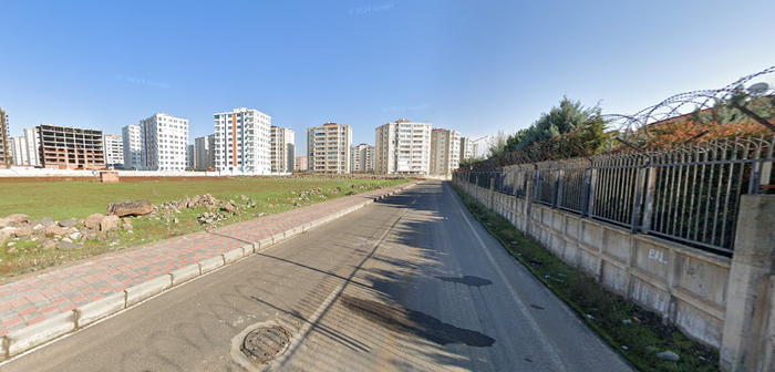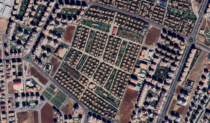 Заметили справа колючую проволоку? Это интересная история. За забором - целый элитный квартал из 253 вилл со своей мечетью, школой, детским парком и прочей инфраструктурой. Вот он со спутника: