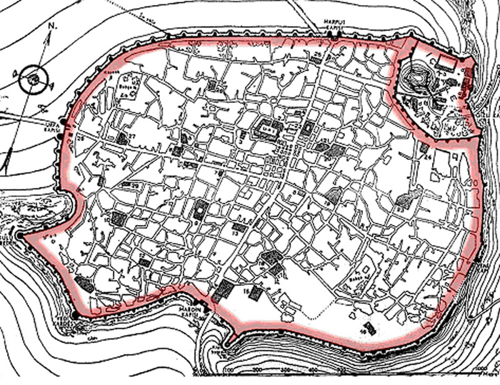 Вроде бы, они самые протяженные в мире среди всех подобных объектов. В плане старый город напоминают рыбу: