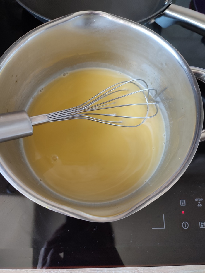 117мл лимонного сока у меня получилось из 2-х средних лимонов. Цедру натереть, отделить белки от желтков. В кастрюле смешать сок, сахар, желтки и масло. Поставить на средний огонь и постоянно помешивая варить 7 минут. Процедить через сито. Затем накрыть плёнкой и полностью остудить.