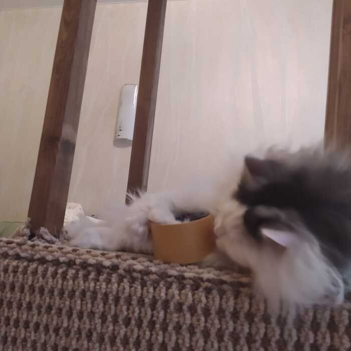 Дом встал на скупо отмеренное место. У младшей кошачьей братии пользуется популярностью. Но кот своего обещания не сдержал, и всё также пытается отвоевать сушку.