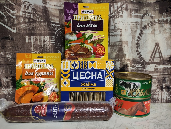 Ещё в коробке был рецепт бешбармака и продукты, из которого его нужно готовить + колбаса: