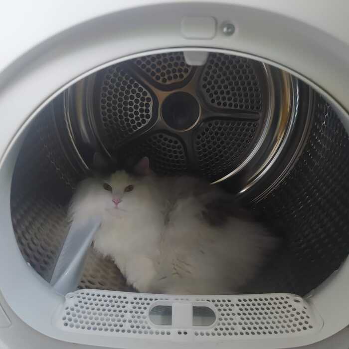 В один прекрасный день мой кот по имени Совëнок, живо откликающийся на Кот и Мохнатый Жоп, оккупировал сушку и всём своими видом показывал, что он в ней будет жить. А вы, кожаные мешки, сушите свои заменители шкуры в другом месте.