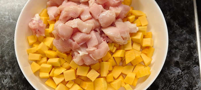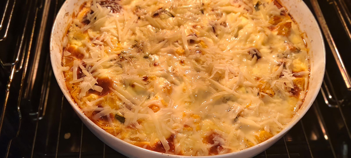 Тыква, куриная грудка ( без кожи), яйца, сметана, укроп, лук, прованские травы, смесь перцев, паприка, куркума, соль, растительное масло ( его нет на фото, как и тертого сыра).