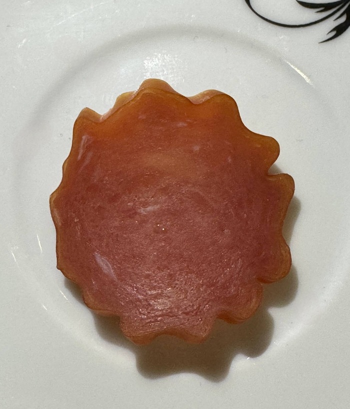 Вкус: удивил он меня своей легкостью, при этом достаточно неплохой сочностью и балансом приправ. Слайсы не жесткие, как часто бывает у других производителей, а именно нежные. За счёт того, что мясо нарезано тонко – оно буквально тает во рту.