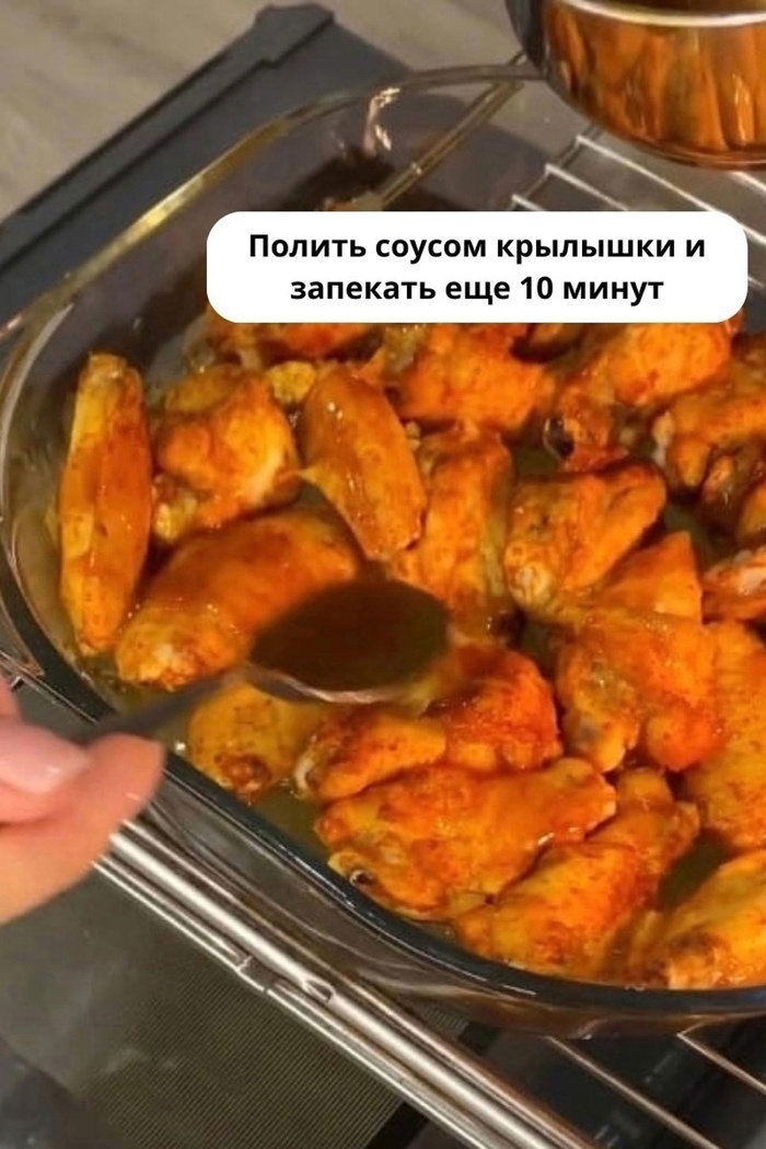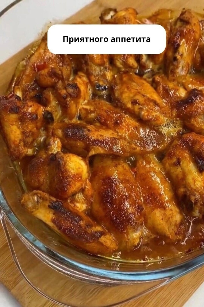 Получаются очень вкусные куриные крылышки с хрустящей корочкой сверху и сочные внутри.