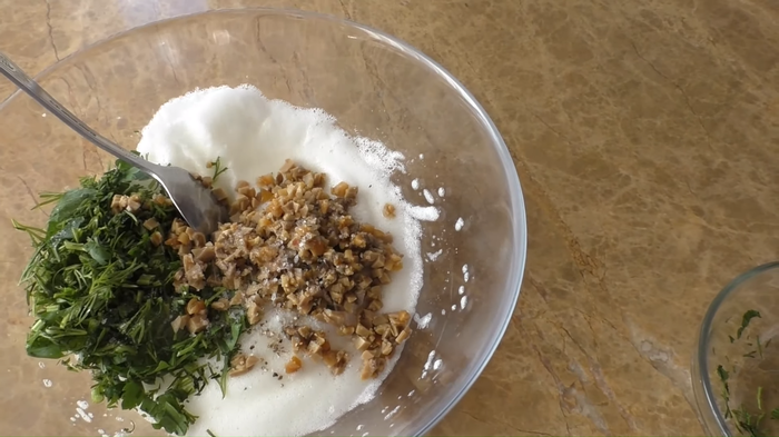 Добавляем зелень (укроп, петрушку) и выключаем огонь). Я еще посыпала кунжутом для антуража.