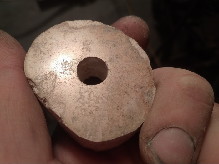 гусары, молчать! я знаю, что она стремная, но так и задумано, честно-честно. форма и "дизайн"(прости господи) делались на "отвали", и все затевалось, чтобы решить инженерную задачу сопряжения двух перпендикулярных отверстий в толще камня. следующие трубки буду мудрить не торопясь и покрасивее. тут есть чувак, который делает красивые каменные трубки, но у него каменные только чашки, а мундштук отдельный из другого материала. у меня все одним куском.
