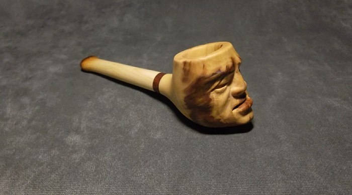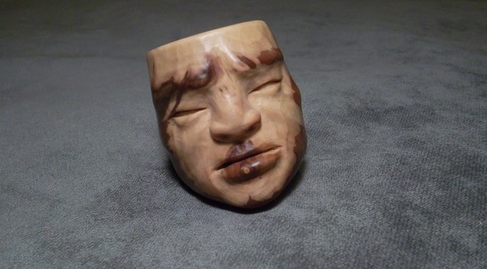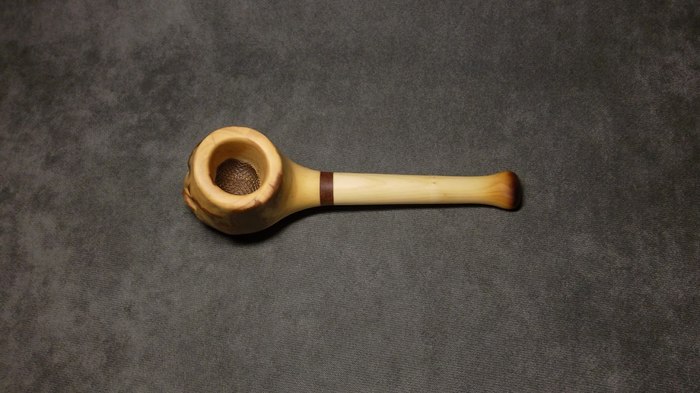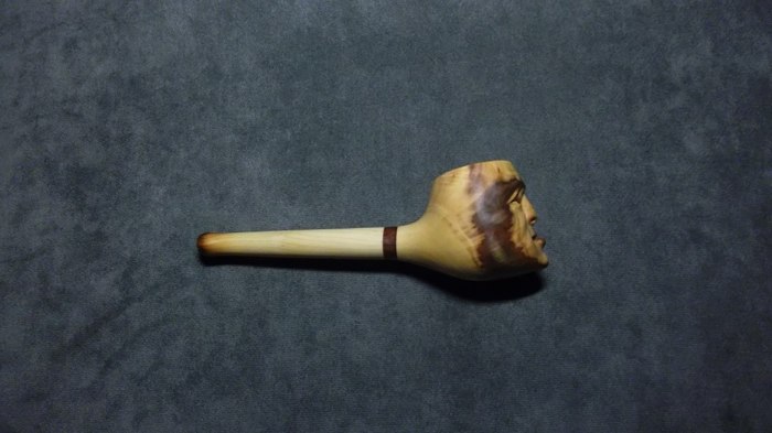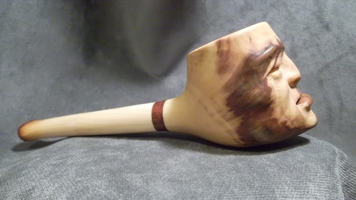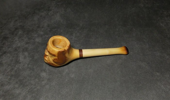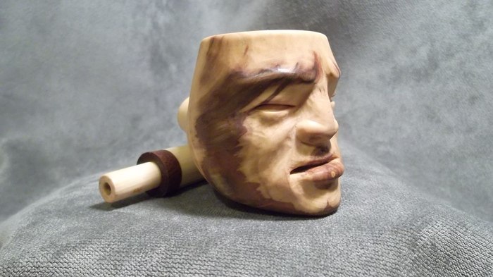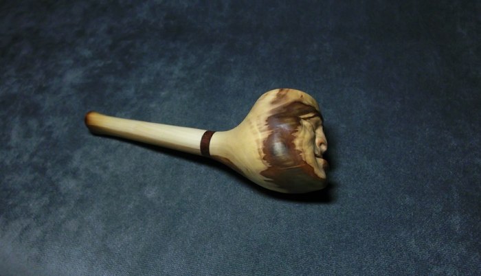 Очень уж хотелось фактуры! Но вот дальше мне не очень повезло. После случайного удара сломался чубук и пришлось все полностью переделывать в короткую "носогрейку". К сожалению, отсутствие фильтра для меня было критично и трубка лежала на полке - просто как сувенир.