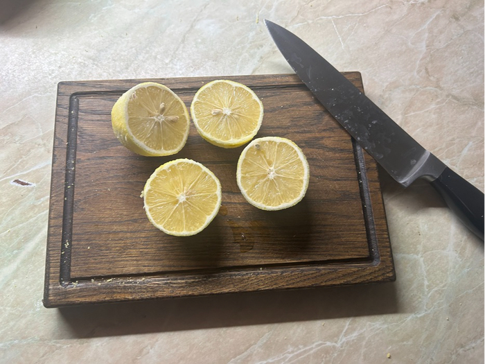 Выжатые половинки лимона не выкидываем, они нам ещё понадобятся.