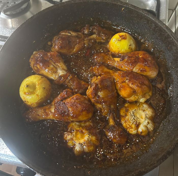 Готовим на огне ниже среднего пока соус не уварится и не загустеет, занимает около 15-20 минут, но смотрим на состояние нашего соуса и глазури, главное не пережечь нашу курочку.