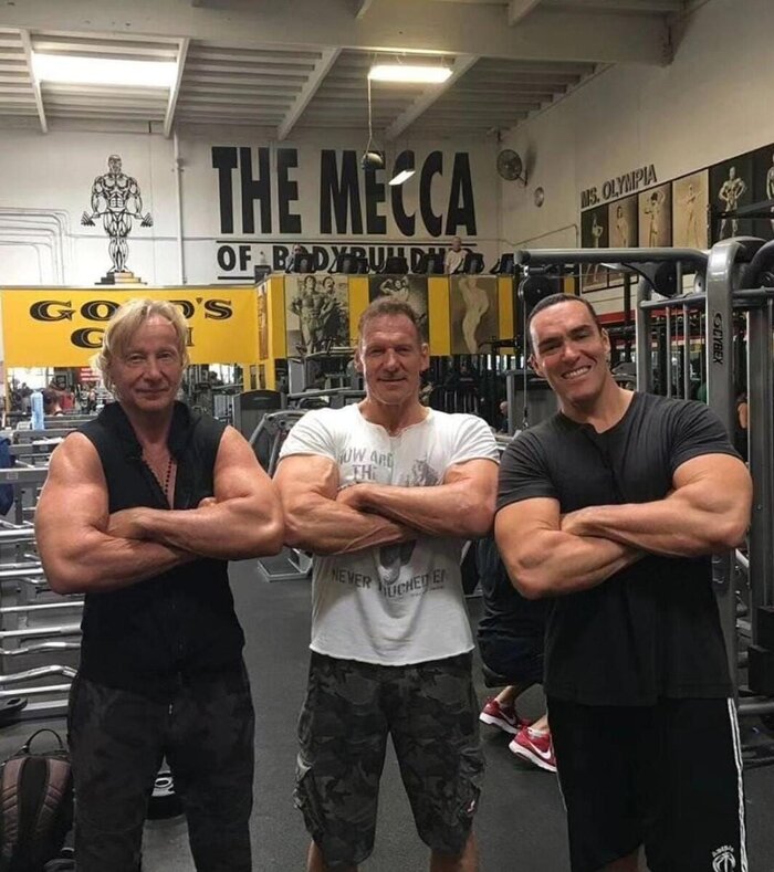 Мы возвращаемся к постерам на стенах качалок. Сегодня в это сложно поверить, но российская селебрити-культура конца 1980-х — начала 1990-х была крайне монолитной и сфокусированной на ограниченном списке персонажей. Кроме Шварценеггера, Сталлоне и Брюса Ли, для подростка мужского пола не существовало ролевых моделей. Это были небожители, деяния которых передавались из уст в уста (и в процессе страшно перевирались); видеосалон и качалка тогда были их храмами. Почти в каждом классе был мощный парень по прозвищу Арнольд. Или Шварц. Или Конан. Или Киборг. Поставить себе цель познакомиться и подружиться с Арнольдом Шварценеггером в тогдашней системе координат было полным безумием — как подружиться с персонажем «Fortnite» или с Микки Маусом.