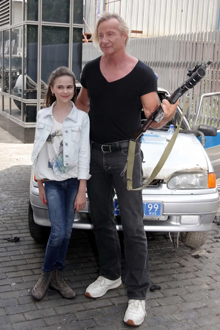 Пока постановщики аккуратно разбрасывают пыль, а пиротехники разгоняют дым, Турчинский позирует для фотокамер. Епифанцев же, сидя на стуле, гладит кошку — ну совсем не похож на безжалостного спецагента Кремнева, которого он играет в фильме.