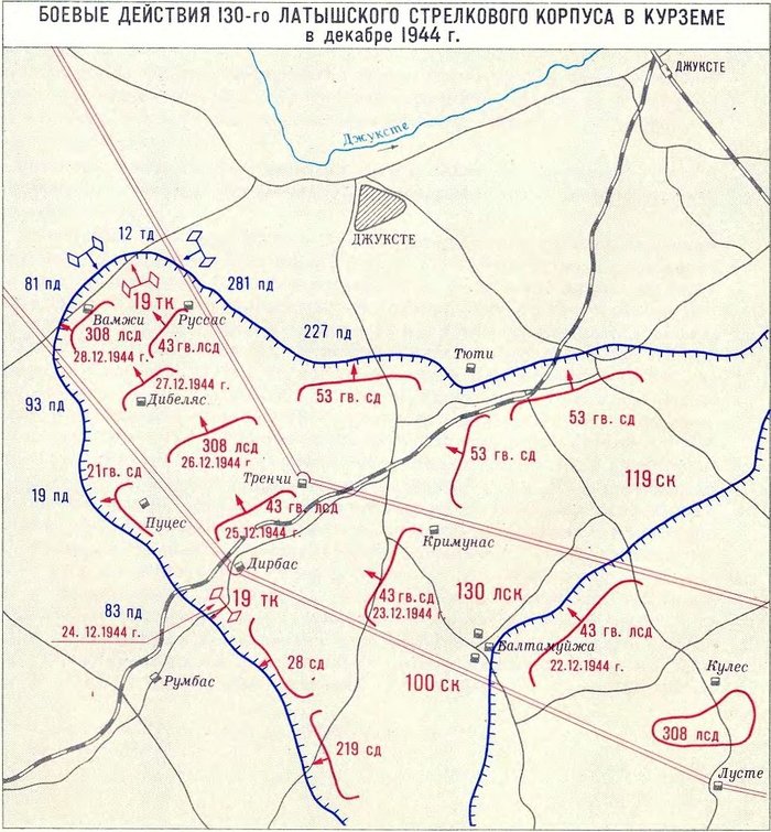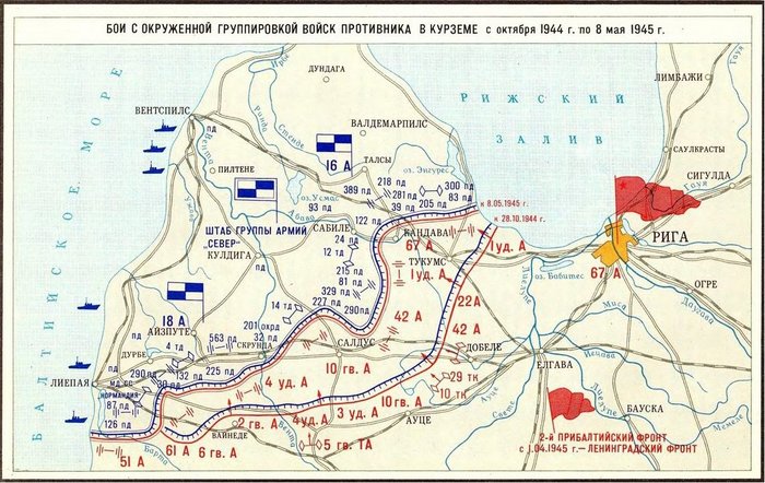 Ещё один «котёл» был ликвидирован в Курляндии. В западной части Латвии часть немецкой группы армий «Север» (16-я и 18-я армии) блокировали ещё осенью 1944 года. Немцы удержали фронт по линии Тукумс – Лиепая. В группировке изначально было около 400 тыс. человек. При этом гитлеровцы сохраняли связь с Рейхом по морю. Красная Армия совершила несколько попыток ликвидации вражеской группировки, но без успеха. Немцы создали крепкую и плотную оборону, которая опиралась на удобную местность (труднопроходимые леса и болота). Войск было много, фронт был небольшим, поэтому значительную часть дивизий можно было поставить во второй-третий эшелоны, вывести в резерв. Кроме того, советские войска (1-й и 2-й Прибалтийские фронты) не имели серьёзного преимущества над врагом, чтобы быстро взломать его оборону.