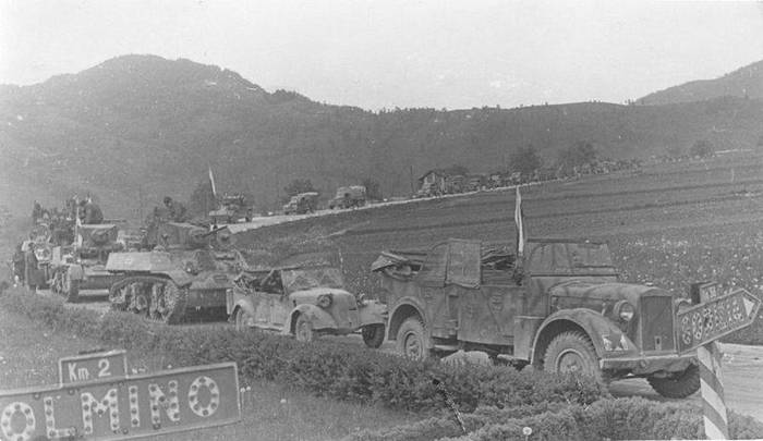 Моторизованный отряд 4-й армии НОАЮ наступает в направлении Толмина, май 1945 года