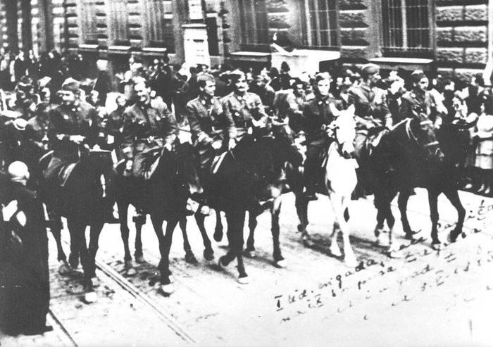 Части НОАЮ входят в освобождённый Загреб. 9 мая 1945