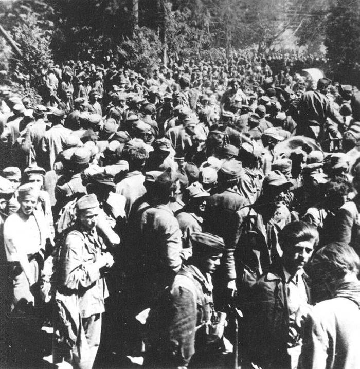 На Балканах развернулась настоящая битва между хорватскими нацистами (усташами) и войсками Народно-освободительной армии Югославии (НОАЮ) под командованием И. Б. Тито. Югославские войска в начале мая 1945 года завершили освобождение Балкан от гитлеровцев (группа армий «Е») и дивизий хорватских националистов. Войска Независимого Государства Хорватия (НГХ — сателлит Германии), усташи, виновные в геноциде сербов, евреев, цыган, множестве военных преступлений (погибли сотни тысяч мирных людей), не желали сдаваться в плен НОАЮ. В эту же группу входили сербские, словенские и боснийские националисты, которые были враждебны Тито. Этих «отморозков» часто уничтожали без суда и следствия.