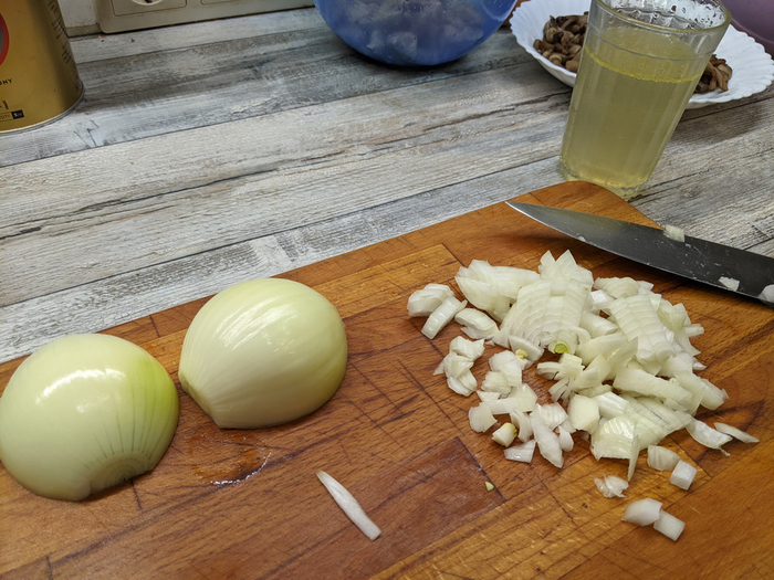 Лук репчатый - полторы-две-три головки, зависит от размера лука и вашей любви к оному.
