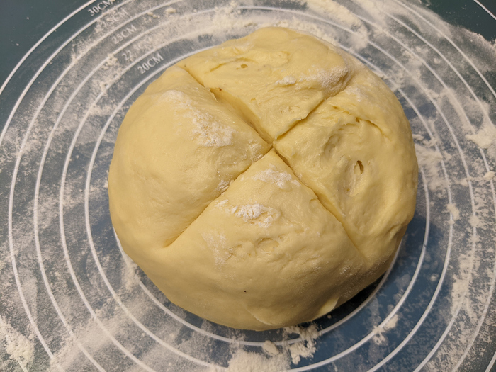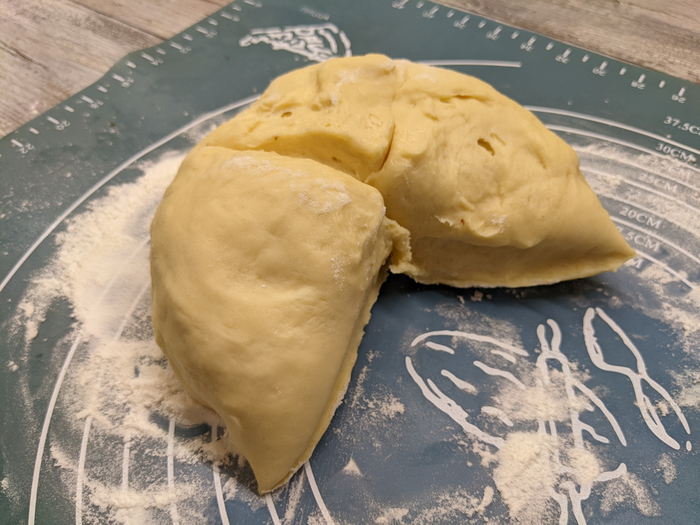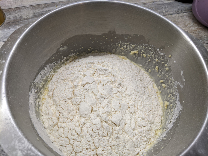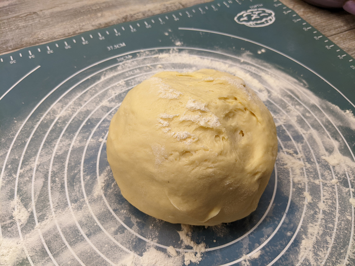 Пора приступать к тесту. Тесто, паче чаяний, ВВП внезапно описал в стиле «замесить и нарубить» (кто не знает, он, как правило, поясняет кучу нюансов по ходу, но тут нет). Так что состав продуктов беру по ВВП, а технологию - по сырниковскому варианту (у него очень похожее пресное сдобное тесто, только без яиц и чуть другая пропорция).