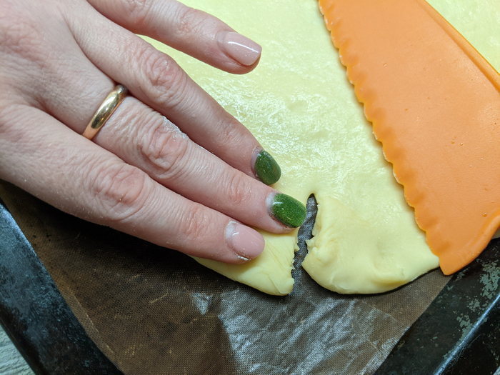 И - да: тесто очень жирное, тает, лучше, чтоб в кухне было прохладно.