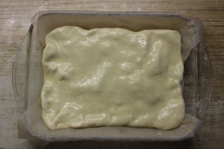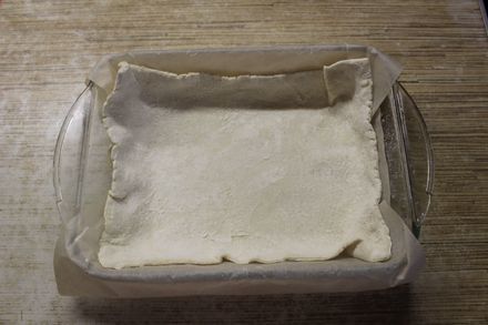 7. Собираем пирог. Если будете выпекать пирог на противне, то нижний слой теста должен быть по размеру немного больше диаметра блина. Если будете выпекать пирог в сковороде или в разъемной форме, тогда нижний слой должен закрывать борта сковороды и даже немного свисать. Лишнее тесто обрежете, когда вся начинка будет выложена. Толщина раскатанного теста не должна превышать 5 мм. Не забудьте смазать форму перед тем, как выкладывать на нее тесто.
