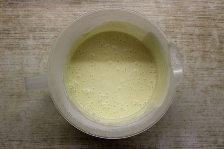 7) Должно получиться довольно-таки жидкое тесто, по консистенции похожее на сметану.