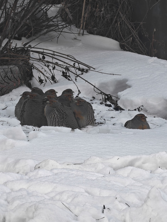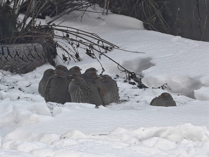 Стая сидела в скошенной стерне и их не было видно совсем.