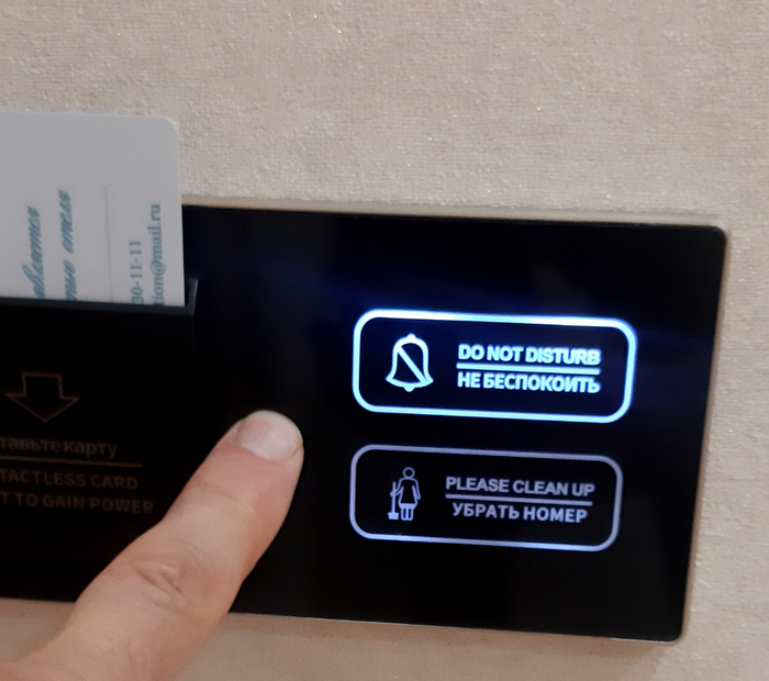 Внутри электронное табло вместо бумажной вешалки на ручку двери