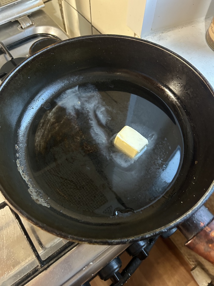 На огне выше среднего в сковороде разогреваем сливыч и подсолныч