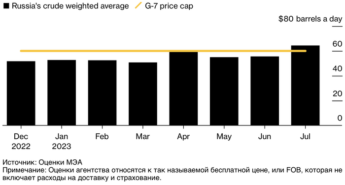 Не помогают даже высокие цены на нефть - Brent торговалась выше $84, в то время как российская Urals примерно на уровне $65 (что выше барьера, установленного Западом).