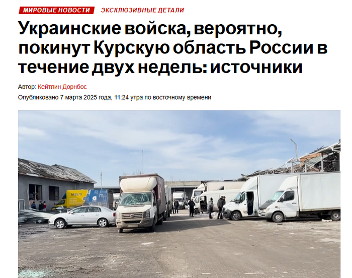 Западные СМИ и вовсе инсайдят, что Киев планирует покинуть Курскую область в ближайшие недели: