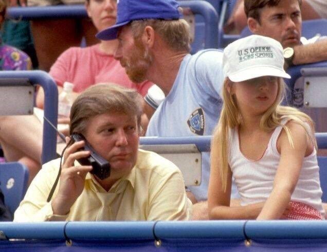 Дональд Трамп с дочерью Иванкой на теннисном турнире, Нью-Йорк, 1991 г.