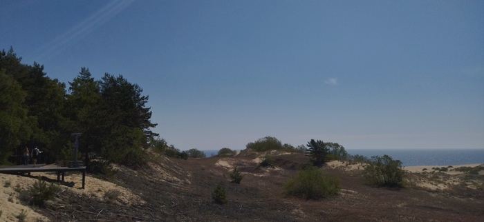 Дюна Эффа, с недоделанной лестницей и вся в листьях и палках, чтобы песок не утек в Литву (по итогу выглядит как песчаный карьер в подмосковье)