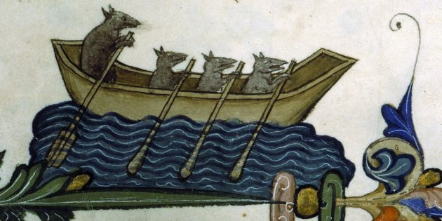 Мыши плывут на лодке. Франция, XIV век