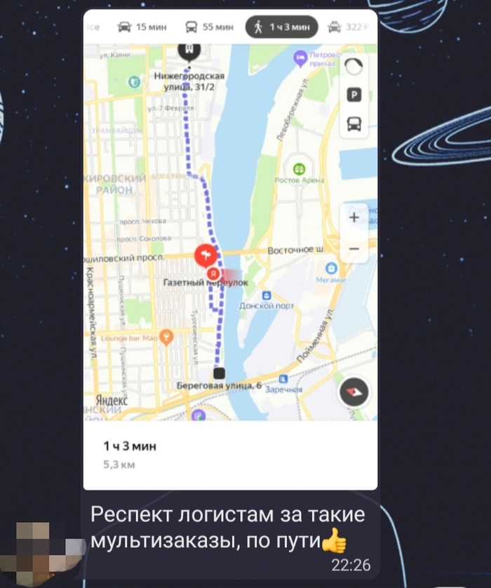 Затем нужно одеться по погоде (Сейчас это лёгкие кроссы, поло от Яндекса, шорты и головной убор), проверить обувь на камушки (боже, ненавижу мелкие камушки!), в последний раз помолиться на удачу, чай и кучу заказов :)