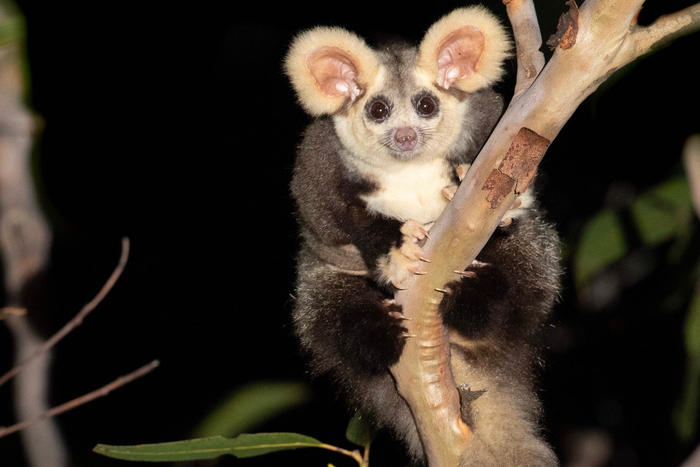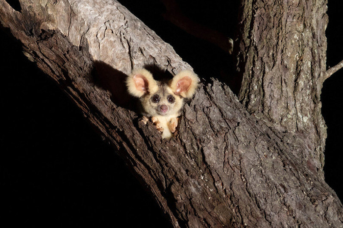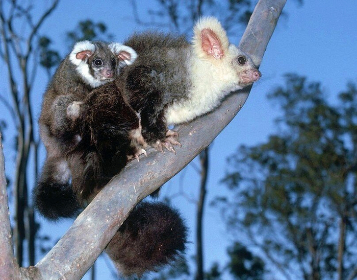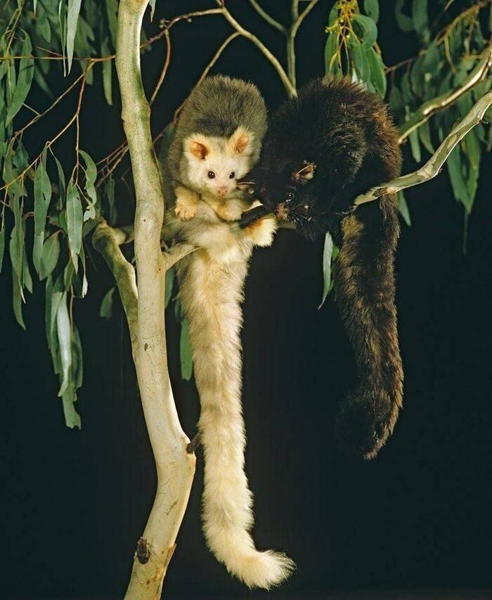 А это ещё один из тех сумчатых австралийцев, что не оборудованы никакими приспособлениями, способными причинить вам вред, зато наделены умильной пушистостью, повышенной ушастостью и талантами лётчика. Зовётся этот зверёк гигантским летучим кускусом, или большим летающим поссумом, и в его названии прям все слова по делу.