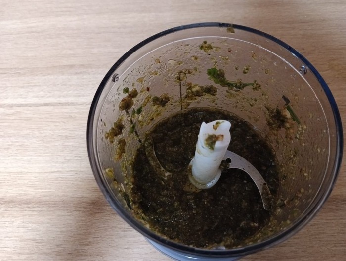 Соус Джерк. Выньте семена из перца, крупно нарежьте зеленый лук и чеснок. Сложите в блендер и прокрутите. Добавьте тимьян, лавровый лист, душистый перец, мускатный орех, молотую гвоздику, белый винный уксус и ром. Прокрутите все ингредиенты до однородности.